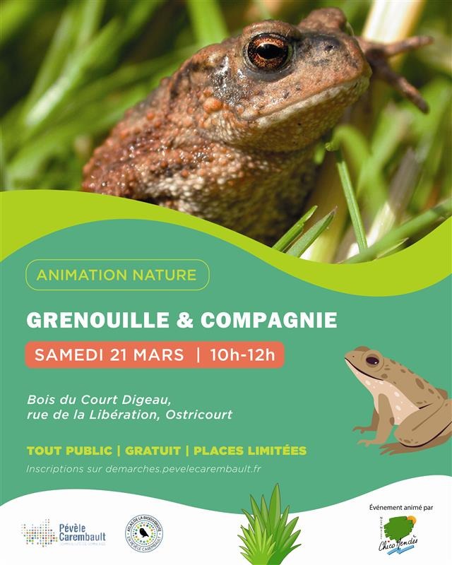 Les experts de l’association Nord Nature Chico Mendès vous emmènent dans le Bois du Court Digeau à Ostricourt. C’est un lieu où les grenouilles et les crapauds rejoignent les mares après un long sommeil hivernal. Ce sera l’occasion de fêter le printemps avec eux.
