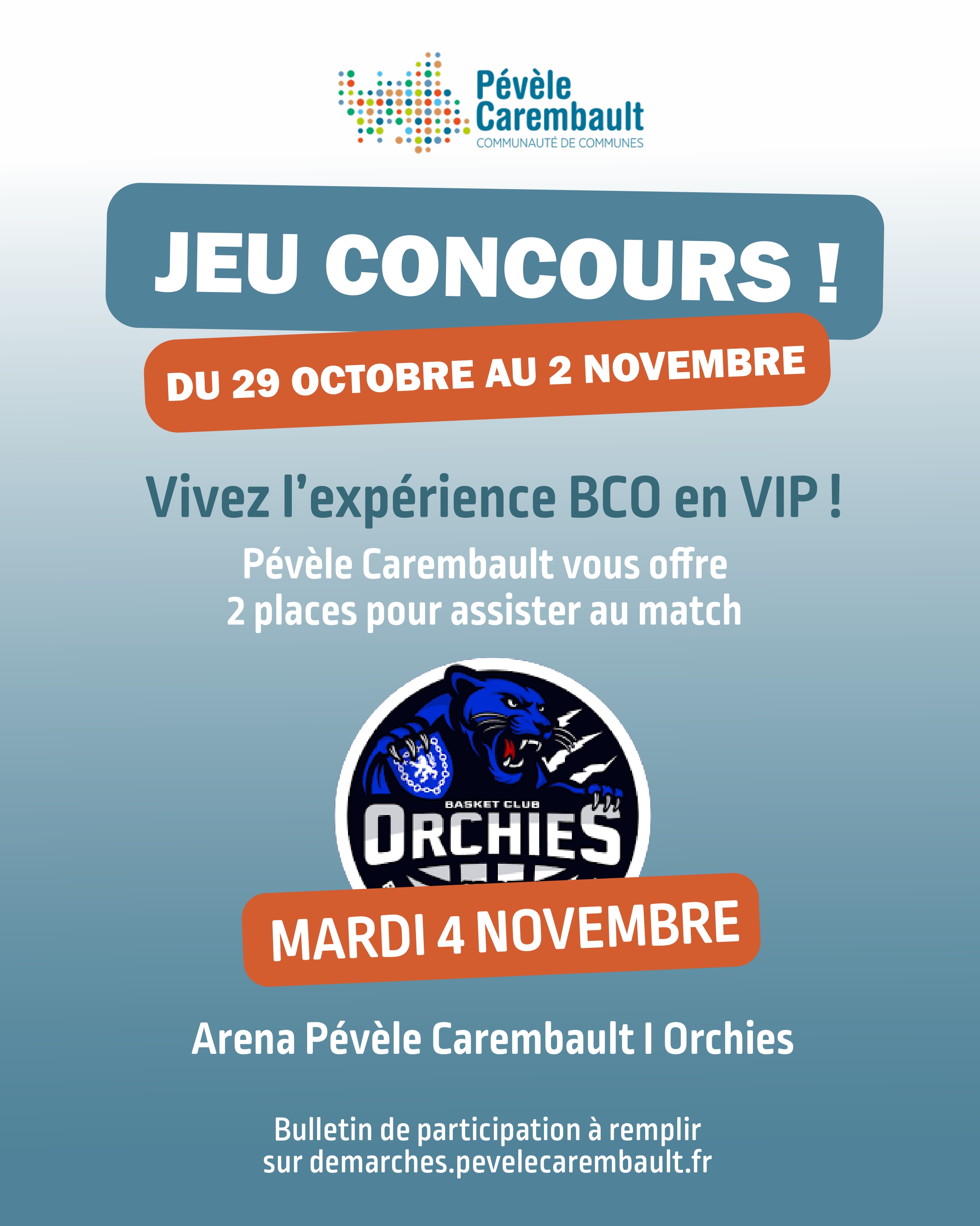 Vivez l’expérience BCO en mode VIP ! Pévèle Carembault lance un jeu concours pour assister au match de l’équipe de basket d’Orchies le mardi 4 novembre octobre 2025 face à Loon-Plage.