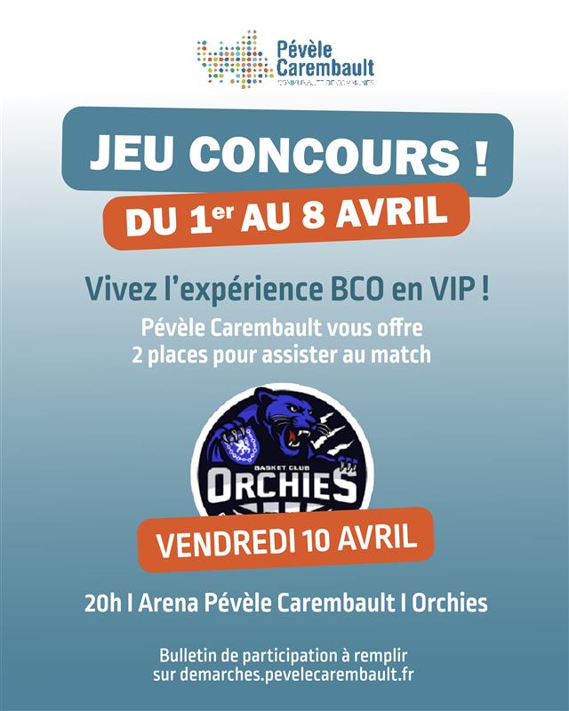 Vivez l’expérience BCO en mode VIP ! Pévèle Carembault lance un jeu concours pour assister au match de l’équipe de basket d’Orchies le vendredi 10 avril 2026 face à l'équipe de Lorient.