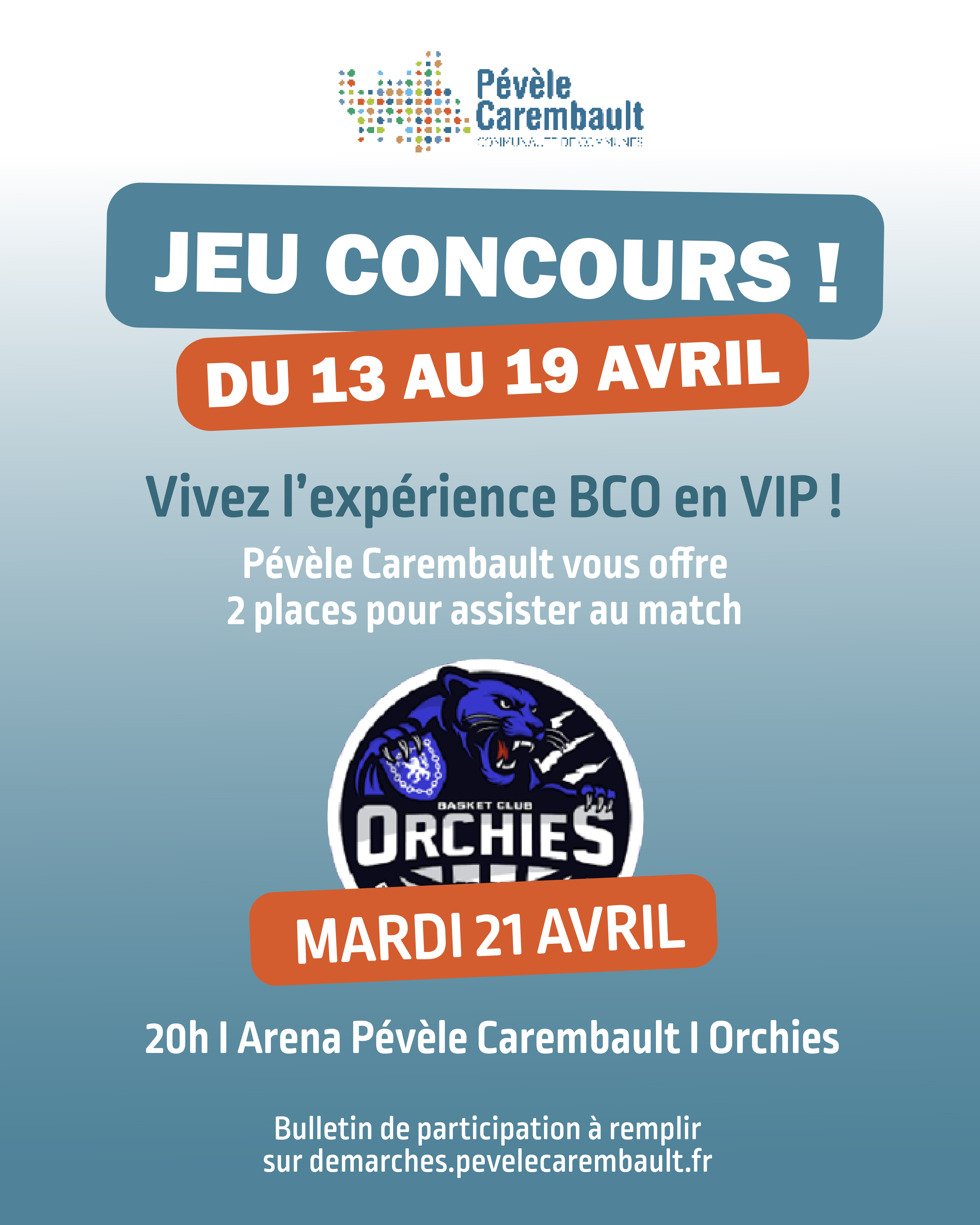 Vivez l’expérience BCO en mode VIP ! Pévèle Carembault lance un jeu concours pour assister au match de l’équipe de basket d’Orchies le mardi 21 avril 2026 face à l'équipe du Pays de Fougères.