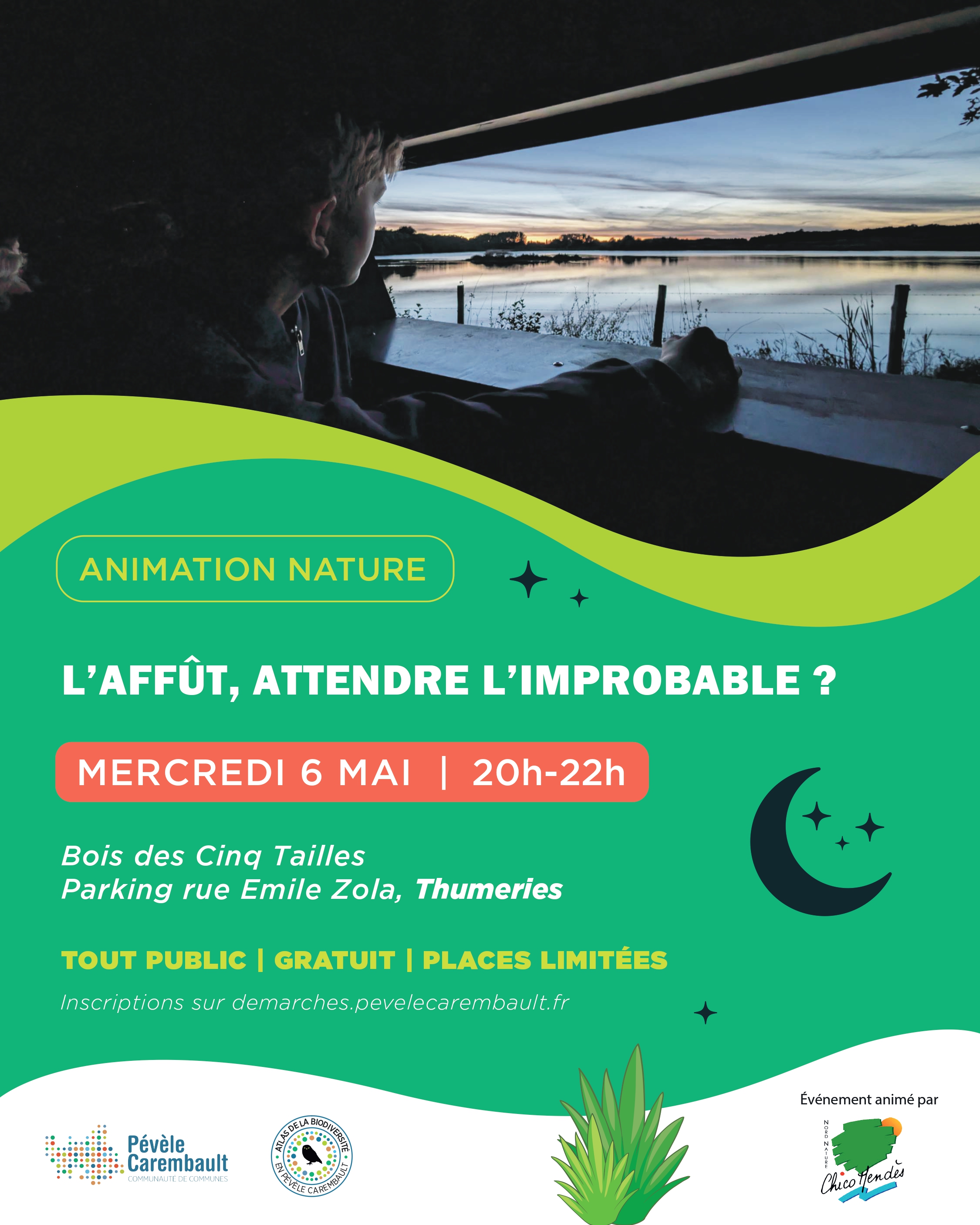 Le rendez-vous est donné sur le parking rue Emile Zola à 20h. Tout public. Gratuit. Durée : 2h. Inscriptions en remplissant le formulaire d'inscription.